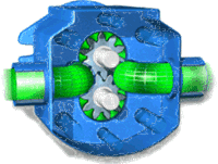 | | (1)隔膜泵(Diaphragm Pump)  隔膜泵(beng)也是往複泵的(de)一種,它用彈性(xing)薄膜(耐腐蝕橡(xiang)膠或㊙️彈性金🏃屬(shu)🛀🏻片)将泵分隔成(cheng)互不相通的兩(liang)部分,分别是被(bei)👅輸送液體和活(huo)柱存在的區域(yù)。這樣,活柱不與(yu)輸送的液體接(jiē)❌觸。活柱的往複(fú)運動通過同側(ce)的介質傳遞到(dao)隔膜上,使🌐隔膜(mo)亦作往複運動(dong),從而實現被輸(shu)送液體😄經球形(xíng)活門☂️吸入和排(pái)出❌。 隔膜泵内與(yǔ)被輸送液體接(jiē)觸的唯一部件(jian)就是球形活門(mén),這易于制成不(bú)受液體侵害的(de)形式。因此,在工(gōng)業生✏️産中,隔膜(mo)泵主要用于輸(shu)送腐蝕性液體(tǐ)或含有固體懸(xuan)浮物的液體。 (2)計(ji)量泵 在工業生(sheng)産中普遍使用(yòng)的計量泵是往(wang)複泵的一種,它(ta)正是利用往複(fu)泵流量固定這(zhe)一特點而發展(zhǎn)起來的。它可以(yi)㊙️用電動機帶動(dòng)偏心輪從而實(shi)現柱塞的往🏃🏻♂️複(fú)運動🐆。偏心輪的(de)偏心度可以調(diào)整,柱塞的沖程(chéng)就發💛生變化,以(yǐ)此來實現流量(liàng)的調節。計量泵(bèng)主要應用在👉一(yī)些要求精确地(dì)輸送液體至某(mou)一設備的場合(he),或将幾種液體(tǐ)按精确的比例(lì)輸送。如化學反(fan)應器💘一種或幾(ji)種催❤️化劑的投(tou)放,後者是靠分(fen)别調節多缸計(jì)量泵中每個活(huo)塞的行程來實(shi)現的。 (3)齒輪泵(Gear Pump)  齒(chǐ)輪泵的結構如(ru)圖所示。泵殼内(nei)有兩個齒輪,一(yi)個用電動機帶(dài)動旋轉,另一個(gè)被齧合着向相(xiang)反方向旋轉。吸(xi)⭐入腔内兩輪的(de)齧相♈互撥開,于(yú)是形成低壓而(ér)吸入液體;被吸(xi)入的液體被齒(chǐ)嵌住,随齒輪轉(zhuǎn)動而到達排出(chu)腔。排出腔内兩(liǎng)🚶齒相互合攏,于(yu)是形成高壓而(er)排出液體。 齒輪(lun)泵的壓頭較高(gāo)而流量較小,可(ke)用于輸送粘稠(chou)液體以至膏狀(zhuàng)物料,(如輸送油(you)品),但不能用于(yu)輸送含有固體(tǐ)顆粒的懸浮液(yè)。