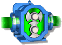 (4)螺杆泵(Screw Pump) 螺杆泵(bèng)内有一個或一(yi)個以上的螺杆(gǎn)。在單螺杆泵中(zhong),螺杆在有内螺(luo)旋的殼内運動(dòng),使液體沿軸向(xiàng)推進,擠壓到排(pai)出口。在雙螺杆(gǎn)泵中,一個螺杆(gan)轉動時帶動另(lìng)⭕一個螺杆,螺紋(wen)互相齧合,液體(ti)被攔截在齧合(he)室内沿♋杆軸前(qian)進,從螺杆兩端(duān)被擠向中央排(pái)出。此外還有多(duo)螺杆泵,轉速高(gāo),螺杆長,因而可(kě)以達到♻️很高的(de)排出壓🏃♂️力。三螺(luó)杆泵排出壓力(lì)可達10MPa以上。 螺杆(gan)泵效率高,噪音(yin)小,适用于在高(gāo)壓下輸送粘稠(chóu)性液🧑🏾🤝🧑🏼體,并可🤩以(yǐ)輸送帶顆粒的(de)懸浮液 。 此外,還(hai)有轉子泵(Lobe pump)及 蠕(rú)動泵(Peristaltic Pump)。轉子泵适(shi)宜輸送粘度較(jiào)大的流體👅,并可(ke)輸送懸浮液。蠕(rú)動泵可将被輸(shū)送液體與機械(xiè)完全隔離,特别(bié)适合輸送衛生(shēng)要求較高或腐(fǔ)蝕性液♻️體,但流(liu)量較小,在醫療(liao)設備、實驗室設(she)備中經常被采(cai)用。   轉子泵 蠕動(dong)泵 | |